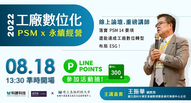科勝科技邀請高科大王振華副教授,分享製程安全管理 PSM 實務觀點與輔導經驗。誠摯邀請您參加 8/18 【免費線上論壇】。高風險製程、環衛安相關領域朋友,別錯過這次難得的機會囉 !
