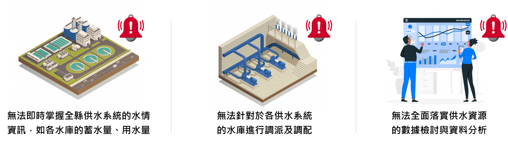 此客戶希望讓報表紀錄全區域供水系統共15個水庫的水資源資訊。同時各水庫的蓄水量及用水量換算成天數等數據,並以視覺化的方式呈現。