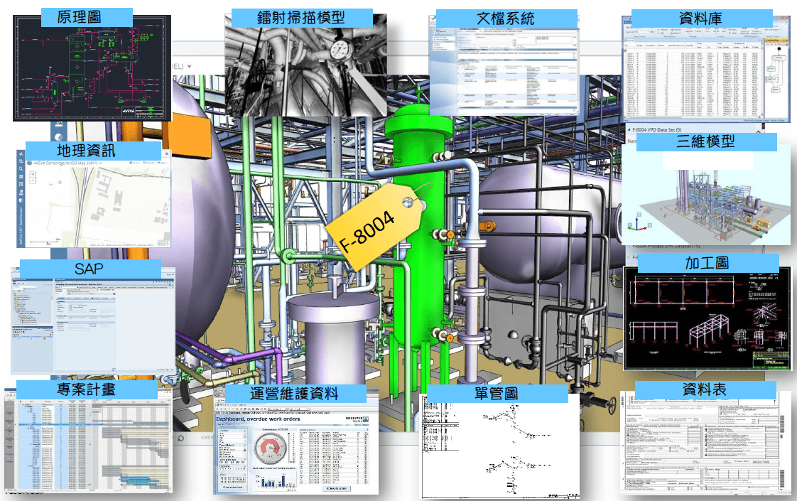 無論是對工廠業主還是 EPC (工程統包) 廠商而言,許多不同格式的資料時常儲存不同的地點而且沒有或是無法互相關聯。因此造成大量的資料取得過程繁複甚至不曉得放到哪裡,大大影響到整個運作的效率。