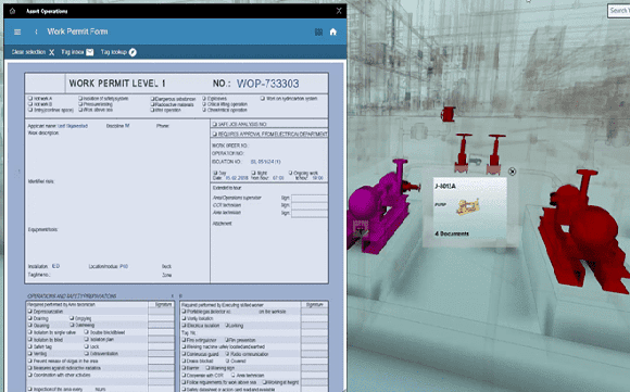 點選模型就能得知設備維修紀錄、工單、與維修時需要隔離的關聯設備。