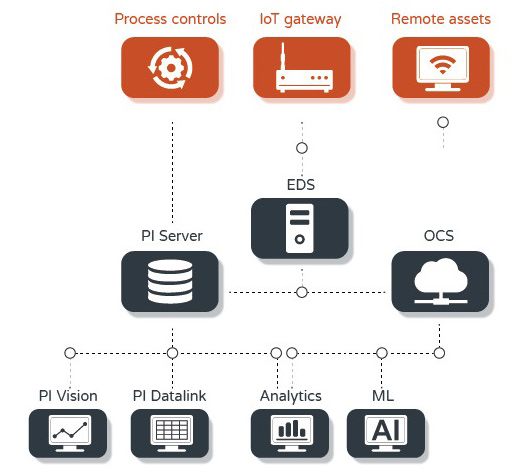 PI System 能從數百種的通訊協定、系統、IIoT 閘道器以及舊設備中,自動蒐集即時數據與時序數據。