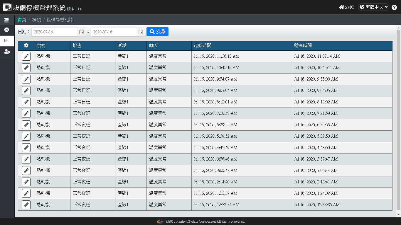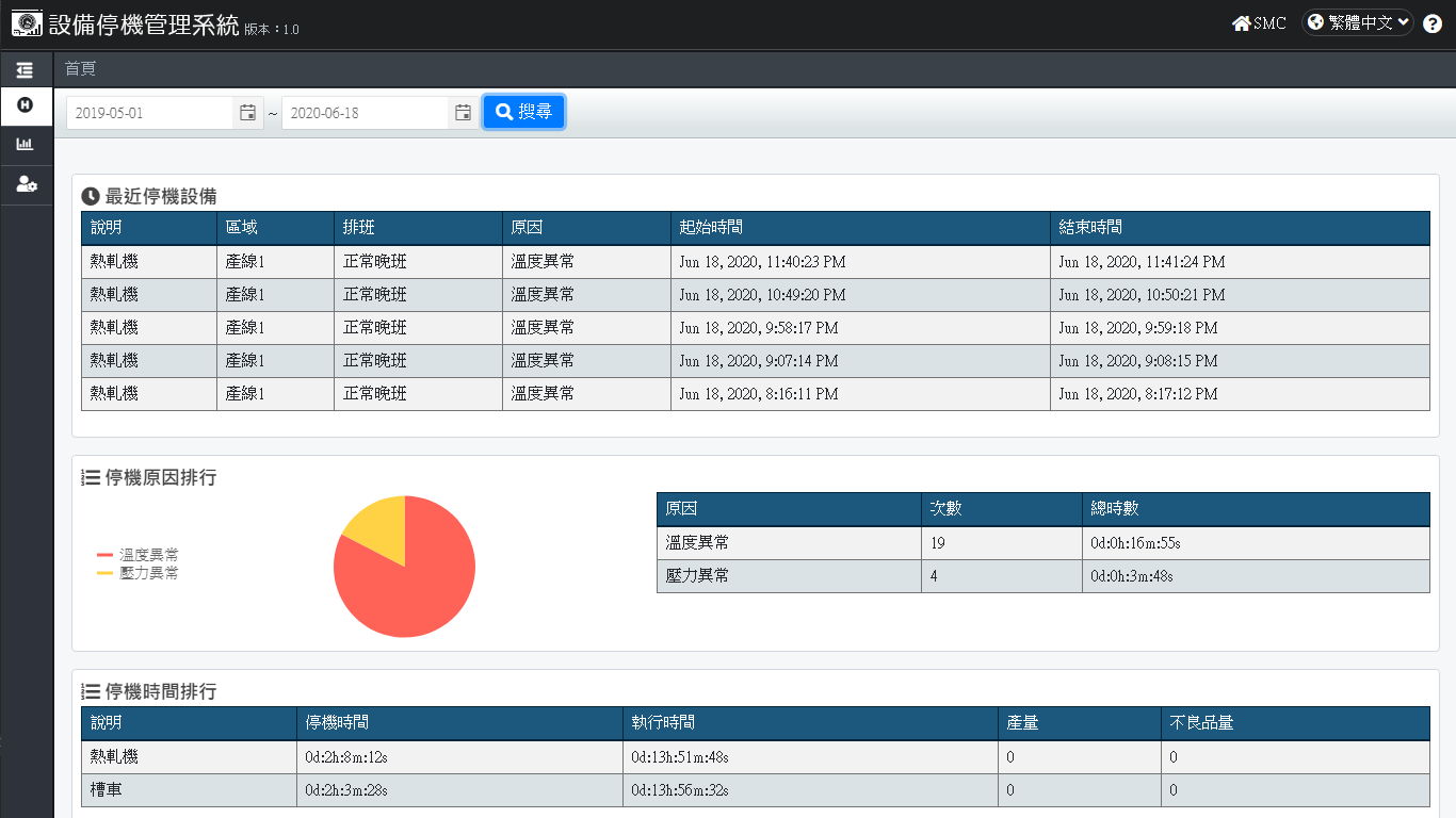 使用者不受區域與時間限制,透過瀏覽器即可查看全廠區運行狀態與停機統計,讓您快速掌握廠區狀況做出處置。